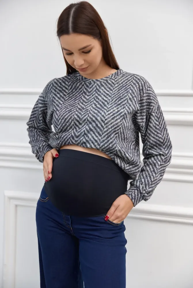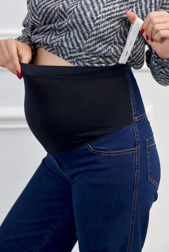 Головна особливість моделі — висока трикотажна вставка , яка м’яко підтримує животик, не здавлюючи його та не створюючи дискомфорту. Вона адаптується до змін фігури, дозволяючи носити джинси на будь-якому терміні вагітності.