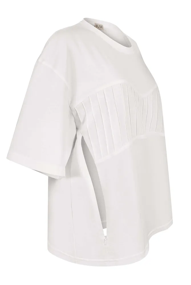 Футболка з декоративним ліфом — базова модель для вагітних і годуючих мам із трендовим дизайном, яка поєднує комфорт, функціональність і трендовий вигляд. Завдяки oversize-крою вона дарує свободу рухів і легко адаптується до змін фігури під час вагітності та після пологів.