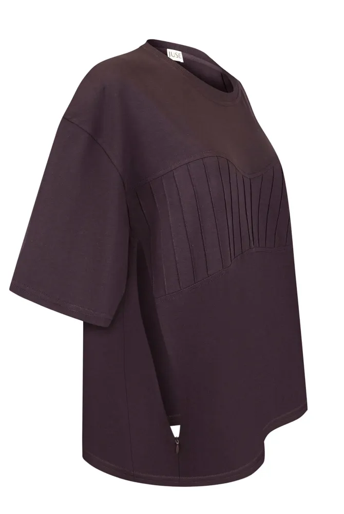Футболка з декоративним ліфом — базова модель для вагітних і годуючих мам із трендовим дизайном, яка поєднує комфорт, функціональність і трендовий вигляд. Завдяки oversize-крою вона дарує свободу рухів і легко адаптується до змін фігури під час вагітності та після пологів.