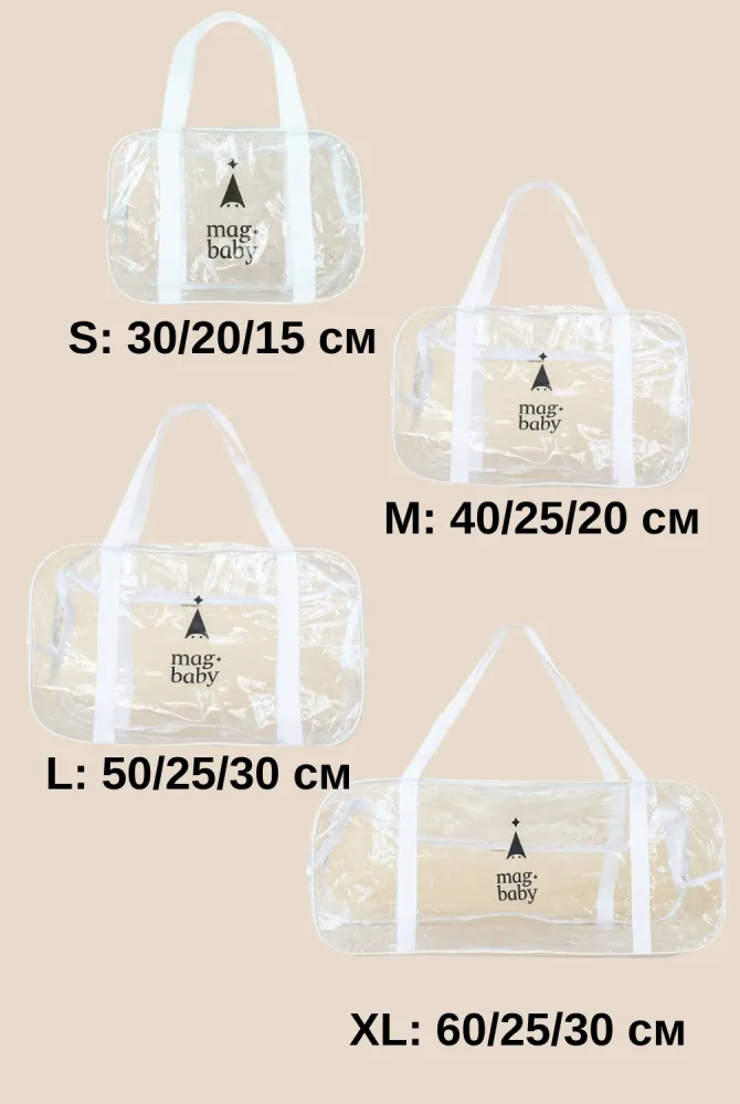 Прозорі сумки виготовлені з якісного ПВХ, що повністю відповідає вимогам більшості пологових будинків. Завдяки прозорим стінкам ви миттєво бачите вміст кожної сумки, а надійна блискавка та зручні ручки забезпечують комфорт у використанні та транспортуванні.