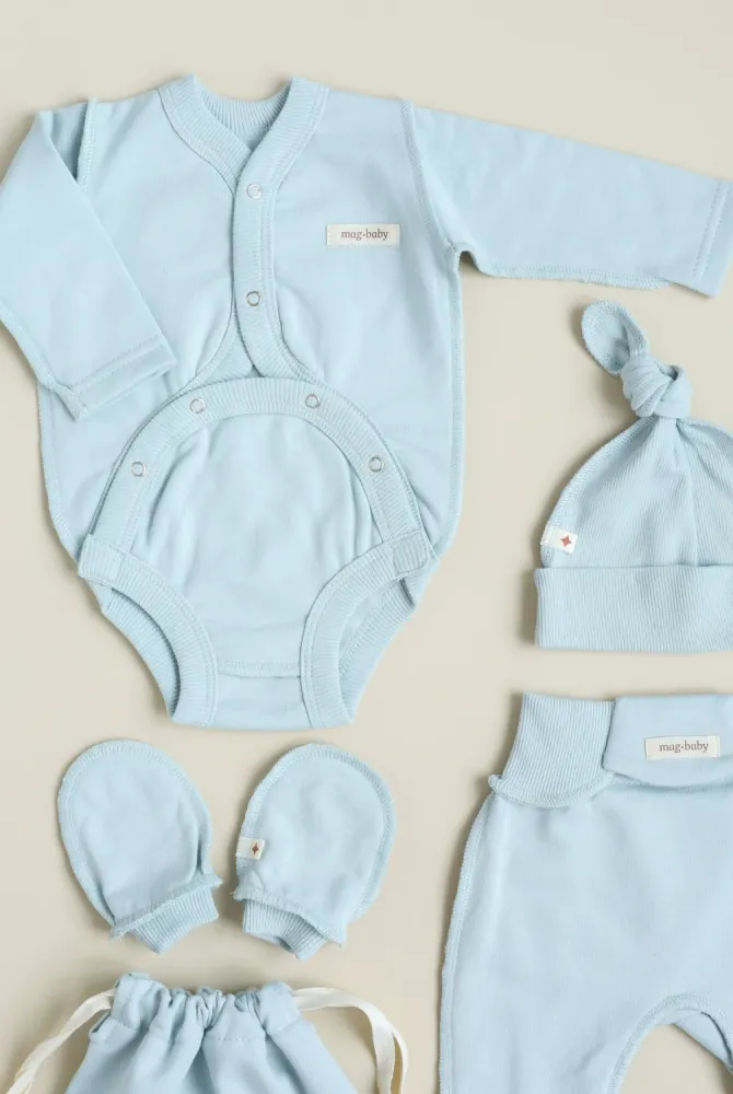 Це саме той набір, який зручно покласти в сумку до пологового будинку. У ньому вже є все необхідне для перших днів життя малюка — практично, красиво та створено з любов’ю.