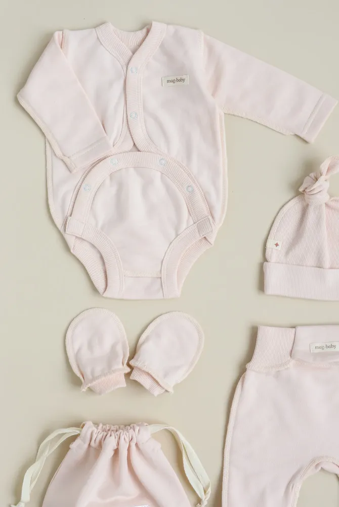 Це саме той набір, який зручно покласти в сумку до пологового будинку. У ньому вже є все необхідне для перших днів життя малюка — практично, красиво та створено з любов’ю.
