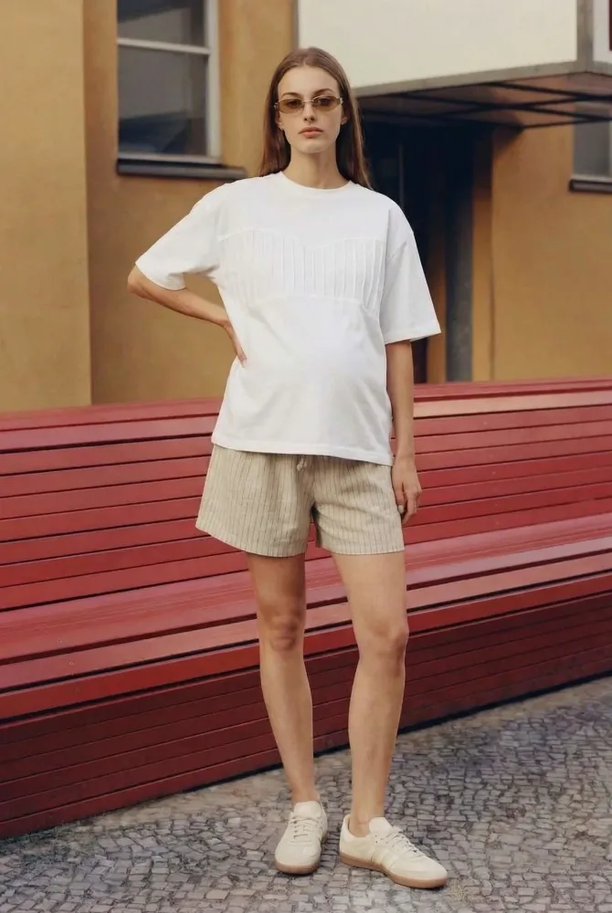 Шорти в смужку — ідеальний вибір для майбутніх мам, які хочуть відчувати легкість, комфорт і виглядати стильно щодня 💛