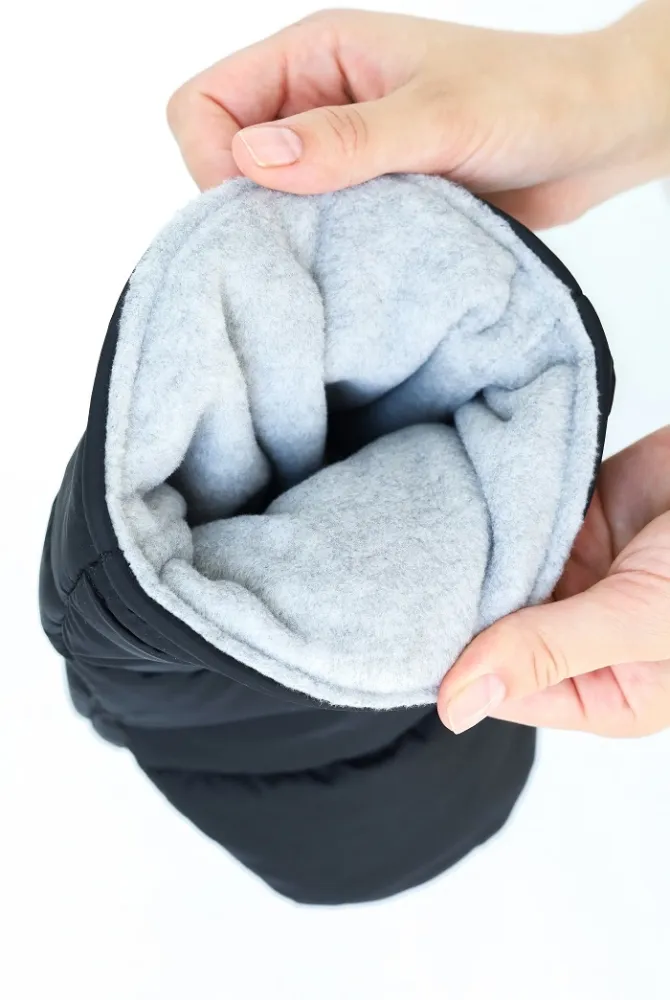 Завдяки поєднанню плащівки, флісу та утеплювача G-loft, муфта чудово зберігає тепло навіть у сильні морози. Вам більше не потрібно знімати рукавиці, щоб взяти дитину на руки чи поправити ковдру — руки завжди у теплі та вільні для дій.