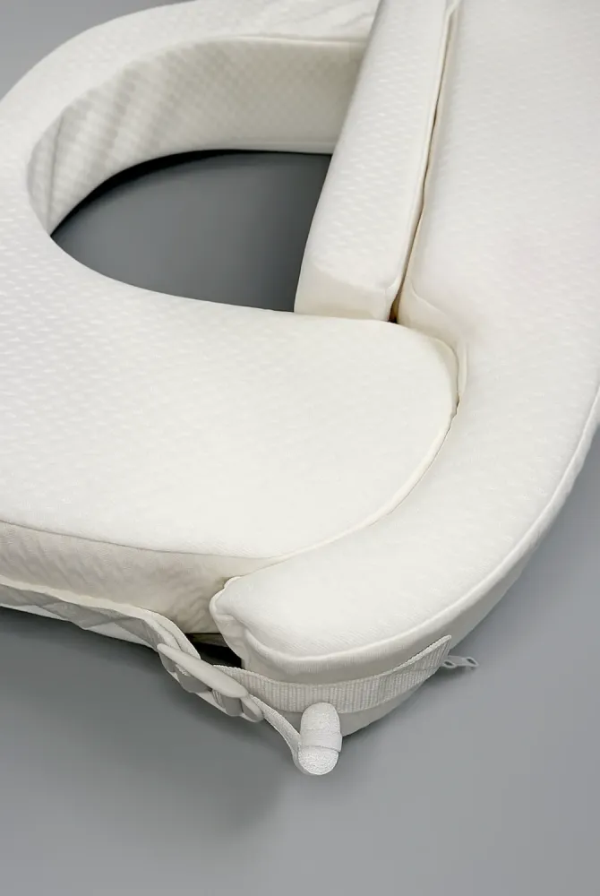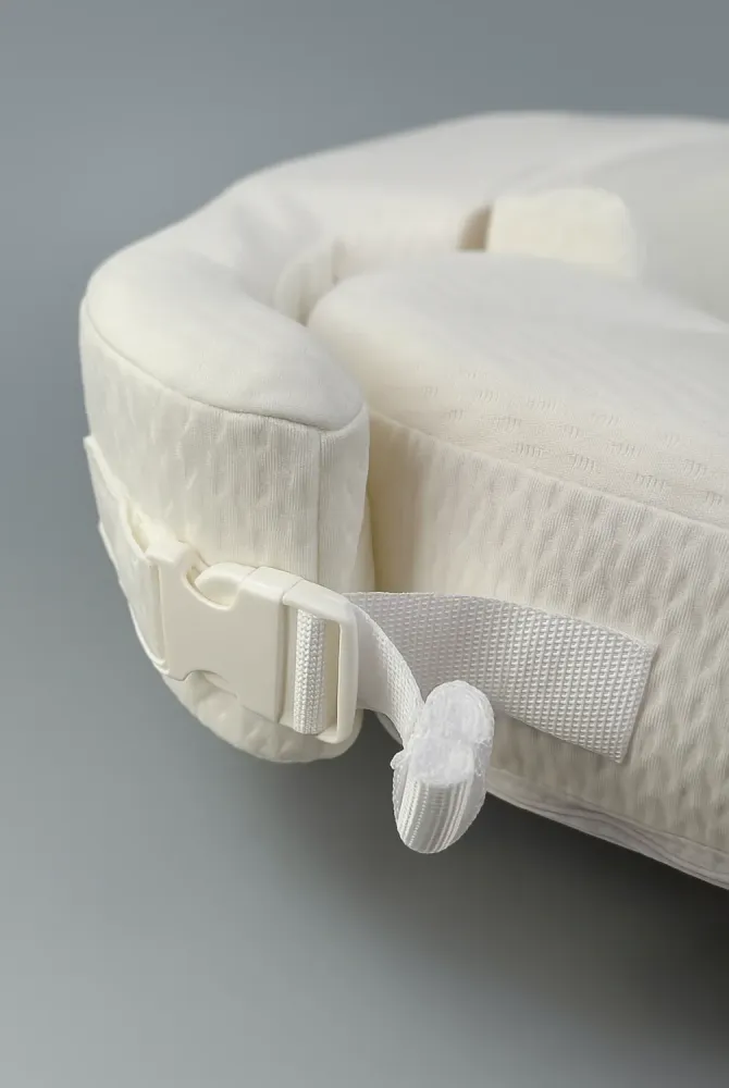 - Бортики по краю подушки для правильного позиционирования новорожденных; Боковая застежка-фастекс на ременной стропе