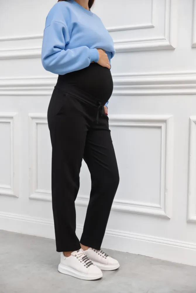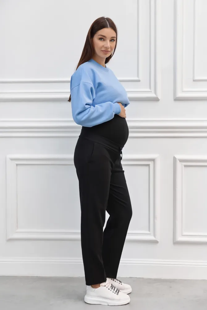 После рождения малыша брюки можно с удобством носить и дальше — эластичную вставку при необходимости можно убрать, и модель станет отличным вариантом для повседневного использования.