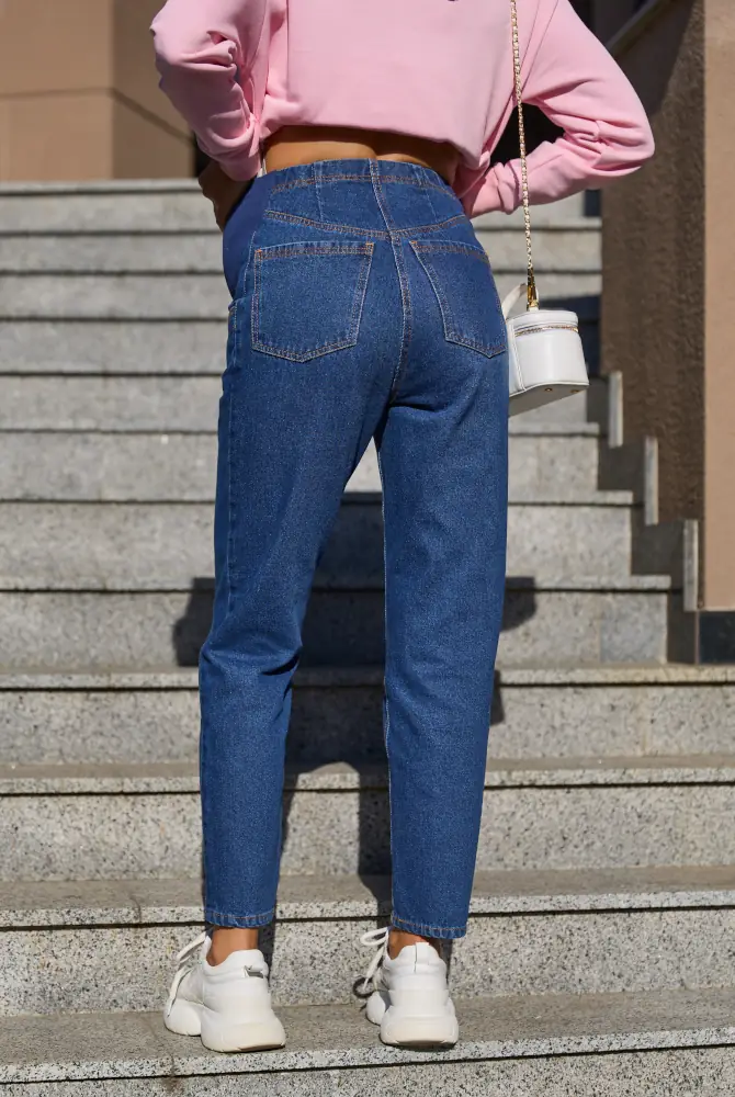 - Актуальный фасон Mom – свободны по бедрам и слегка сужены книзу, создают стильный, современный силуэт.