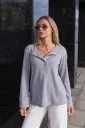 Уютный лонгслив Kalgary для беременных и кормящих мам. Модель имеет свободный крой для максимального комфорта на любом сроке беременности, а глубокая планка пуговиц – для удобного и незаметного кормления.