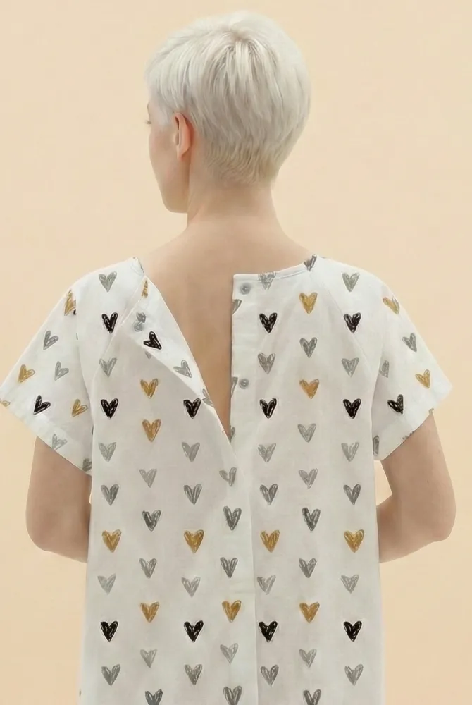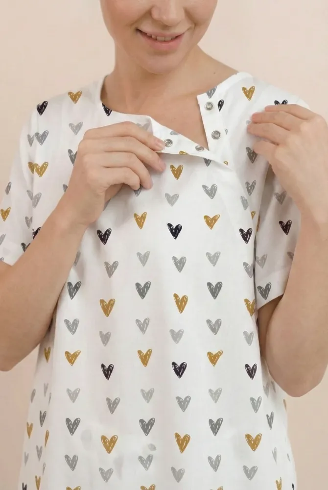 Характеристики Платье-рубашка для родов и кормления, белое с сердечками