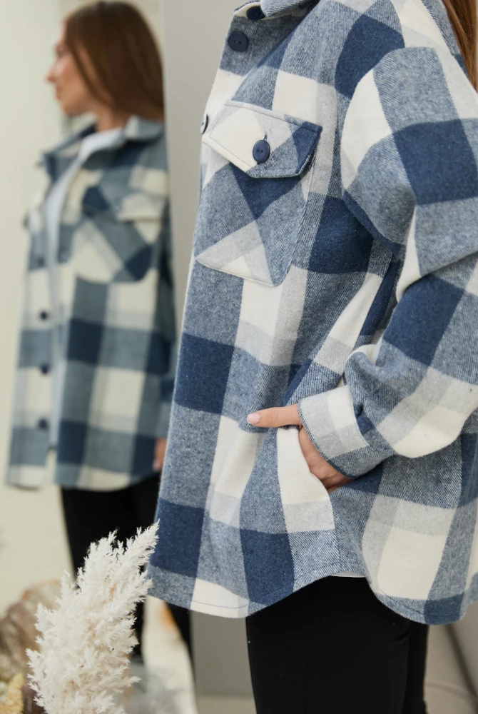 Тёплая байковая рубашка для беременных Monaco в большую сине-белую клетку. Модель выполнена из хлопкового полотна, имеет классический крой и достаточное пространство для роста животика – отлично садится в течение всего срока беременности и после родов.