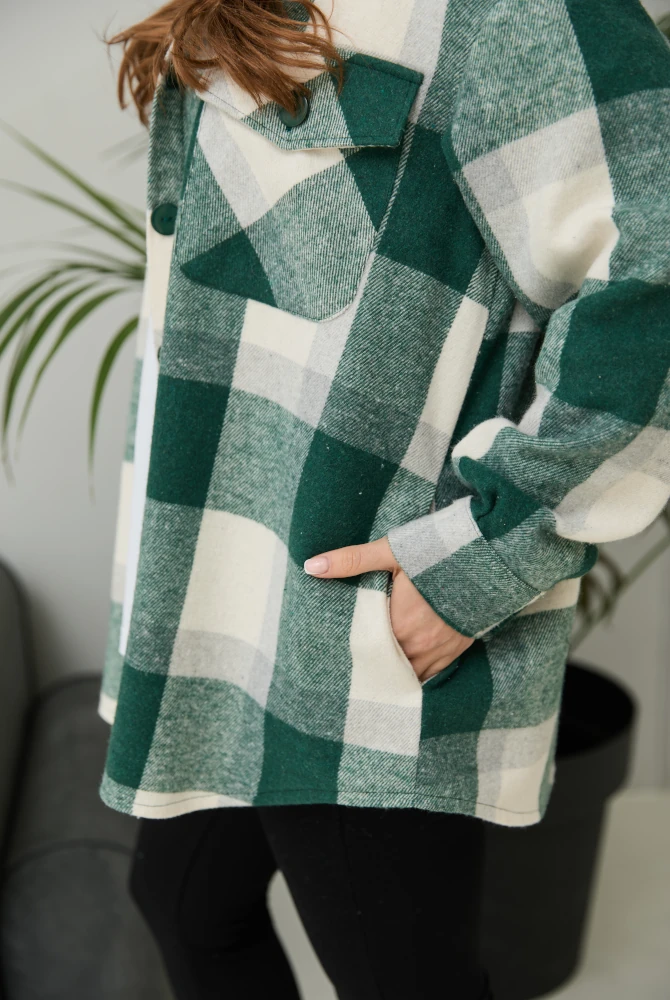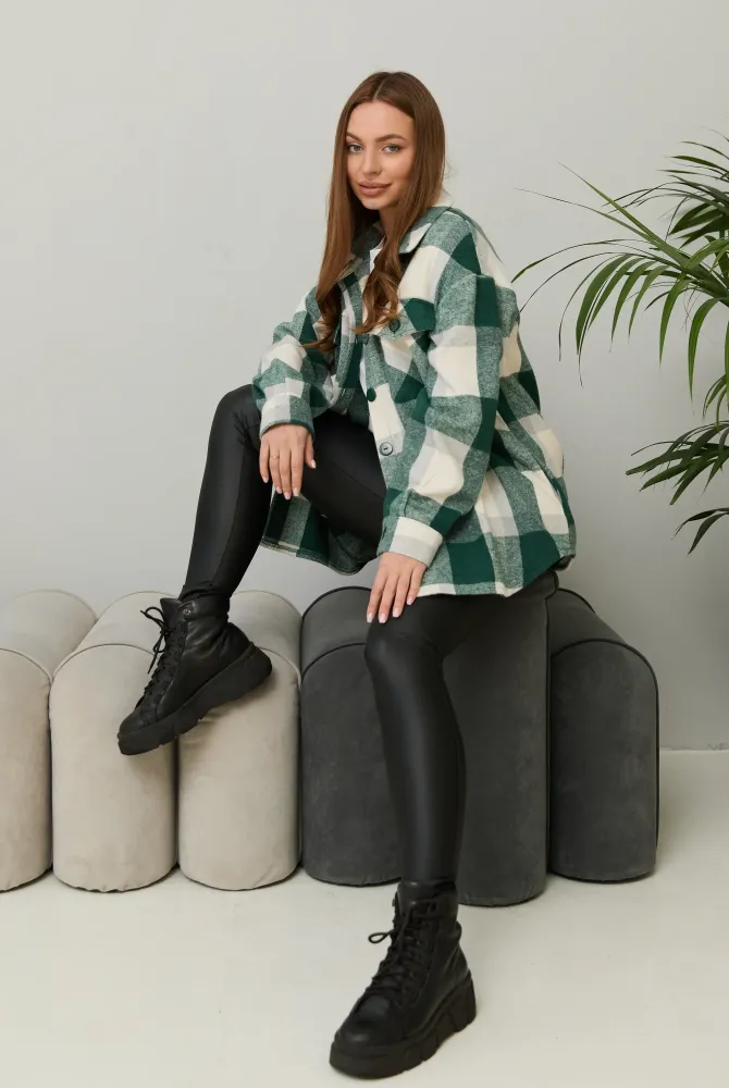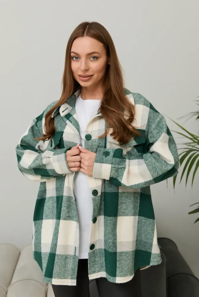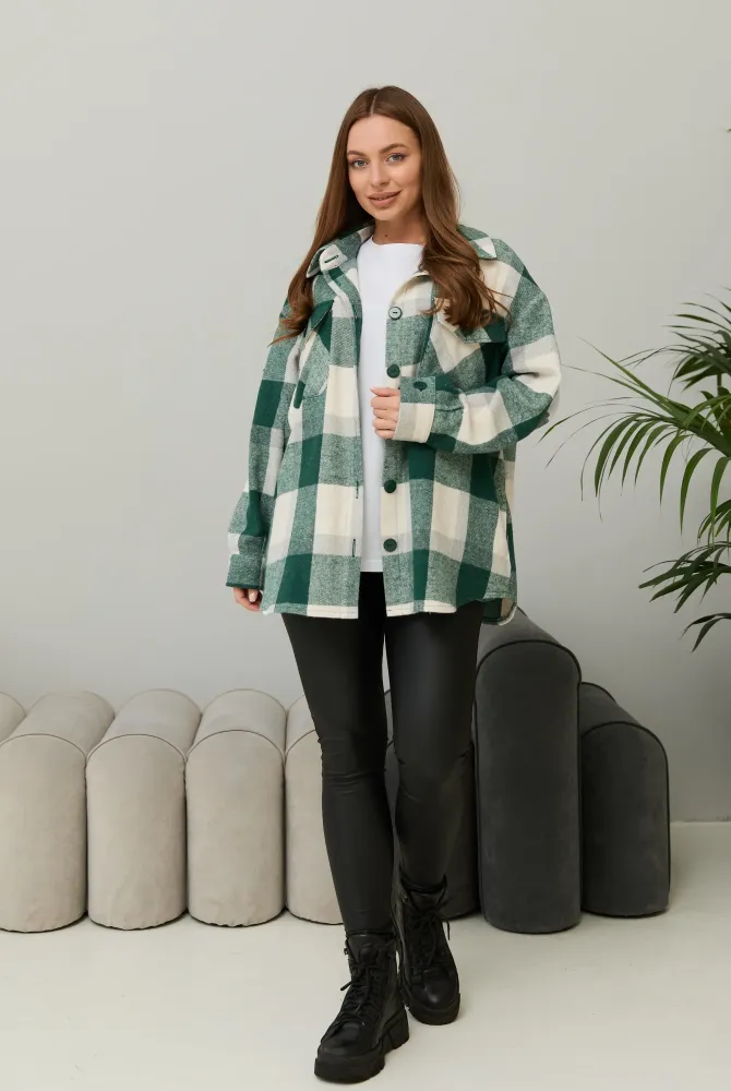 Тёплая байковая рубашка для беременных Monaco в большую зелёно-молочную клетку. Модель выполнена из хлопкового полотна, имеет классический крой и достаточное пространство для роста животика – отлично садится в течение всего срока беременности и после родов.