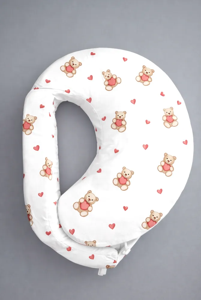 Характеристики Хлопковая наволочка на ортопедическую подушку для кормления, мишки с сердечками