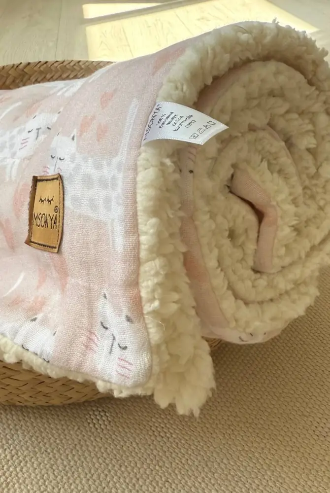 Теплый и невесомый детский муслиновый плед на меховой подкладке TM Msonya станет незаменимым спутником для вашего ребенка. Он подойдет для детей с рождения до 3-х лет. С одной стороны плед изготовлен из мягкой муслиновой нити, а с другой – из Тедди, что делает его не только приятным на ощупь, но и очень теплым.