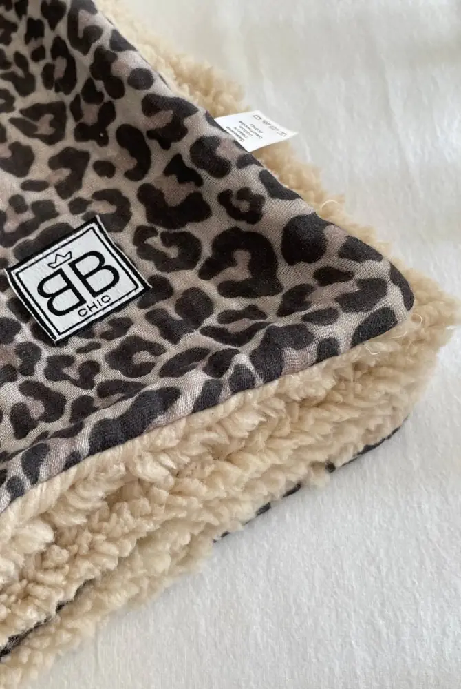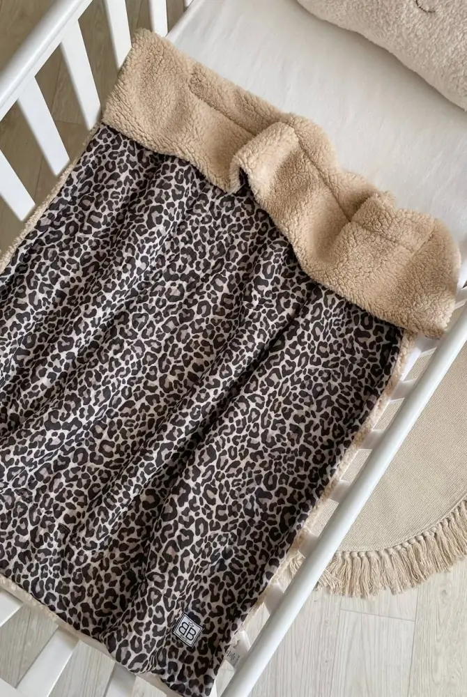 Характеристики Утепленный плед с меха и муслина, леопардовый