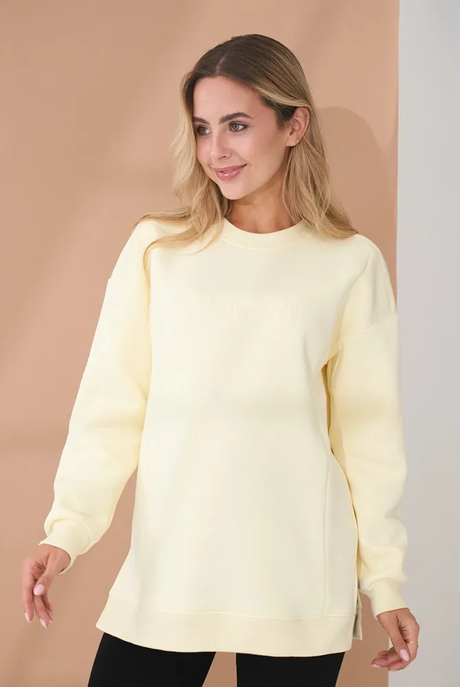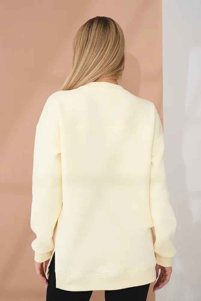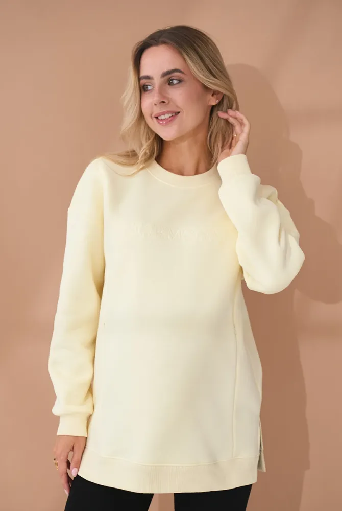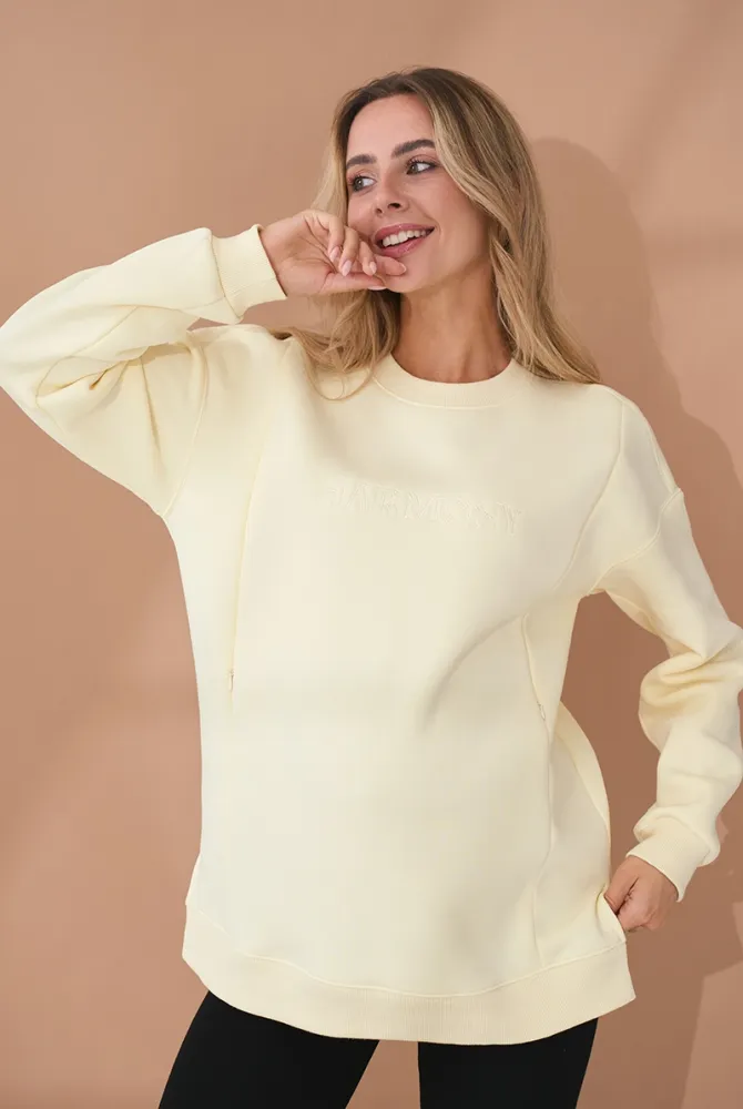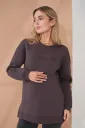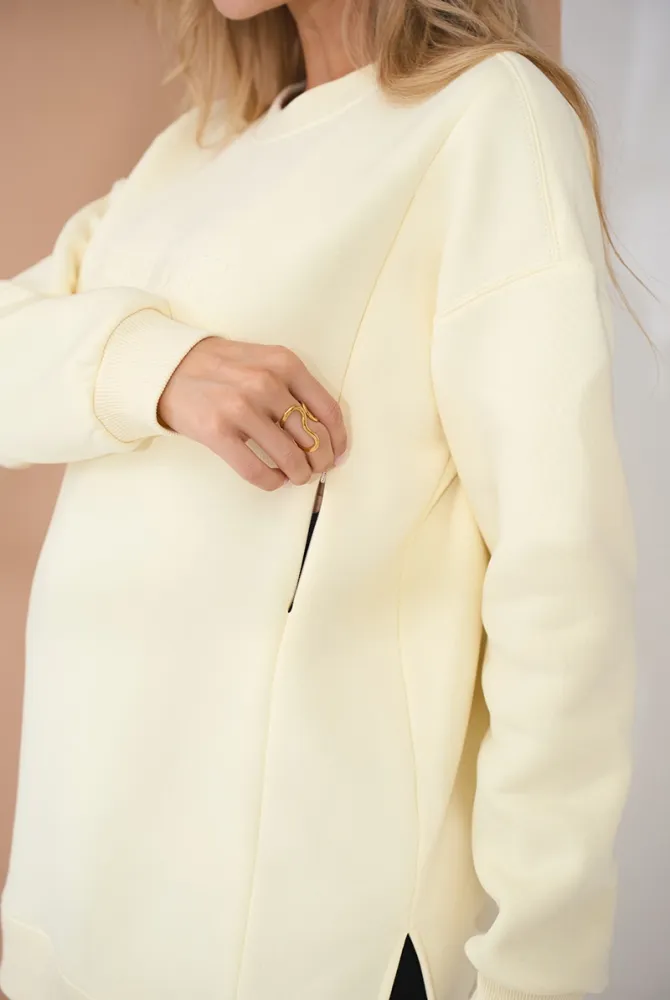 Теплая туника для беременных и кормящих мам из плотного хлопкового трикотажа с начесом. Модель oversize, с достаточным пространством для роста живота и скрытыми вертикальными змейками, для быстрого и комфортного кормления.