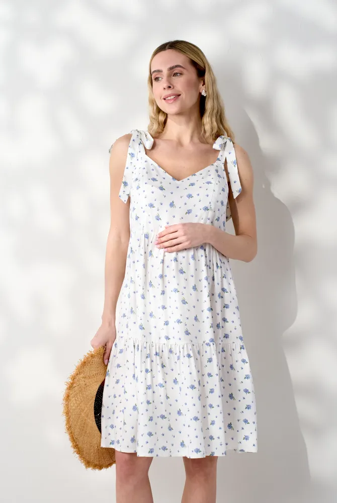 Характеристики Cарафан для вагітних і годуючих із ярусною спідницею Lilo, сині квіти