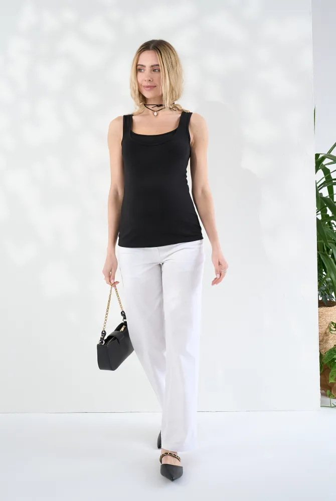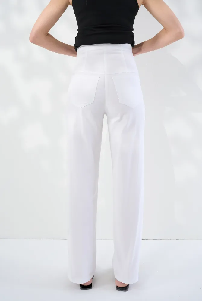 Штани Isla для вагітних — зручна модель прямих брюк білого кольору зі стрейч-котону. Завдяки комфортному крою та еластичній тканині штани добре сидять по фігурі й ідеально підходять для повсякденних образів майбутньої мами.