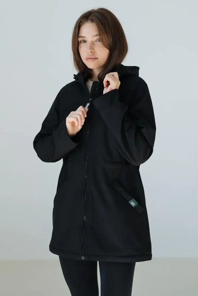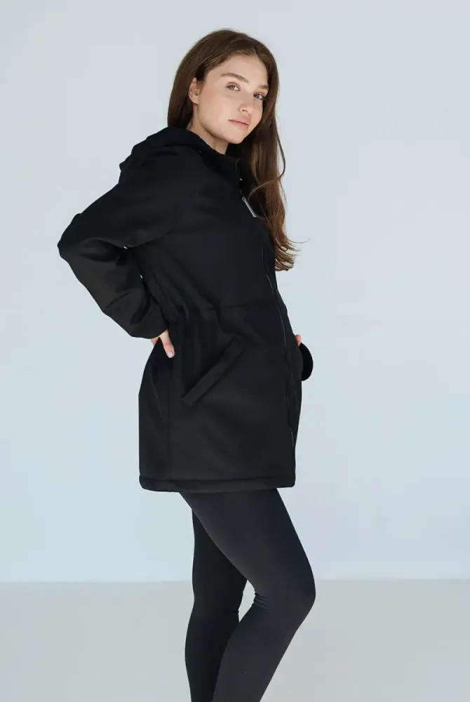 - Як куртку для вагітних — комфортно носиться на будь-якому терміні, м’яко адаптуючись до змін фігури.