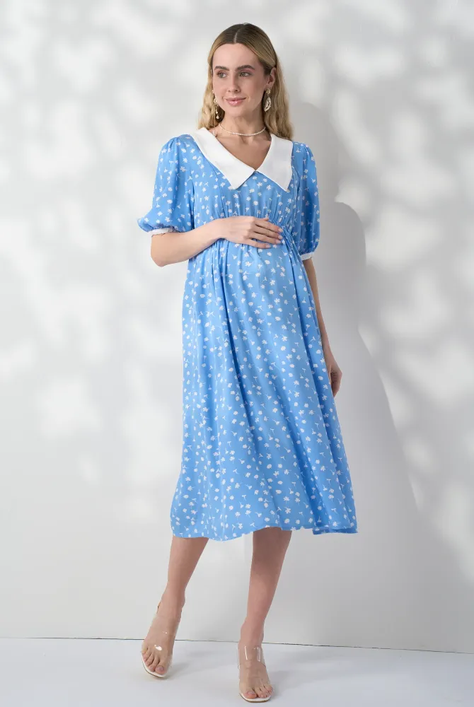 Характеристики Сукня Georgia для вагітних з секретом для годування, молочні квіти на блаиктному
